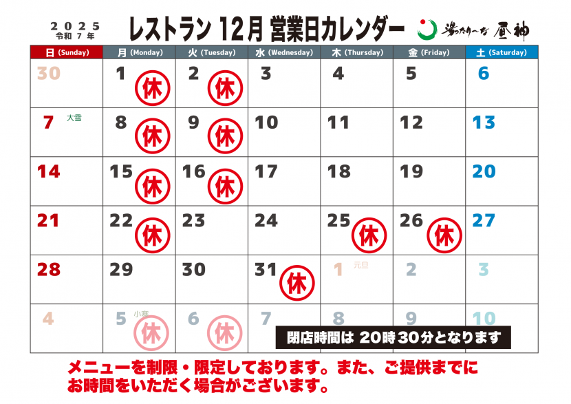 最新情報 |昼神温泉 日帰り温泉施設湯ったりーな昼神
