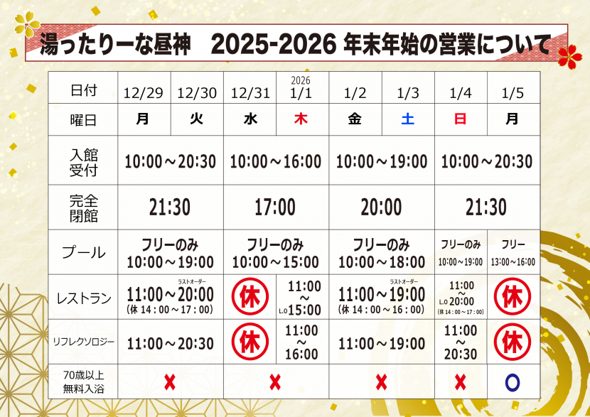 年末年始の営業時間のお知らせ