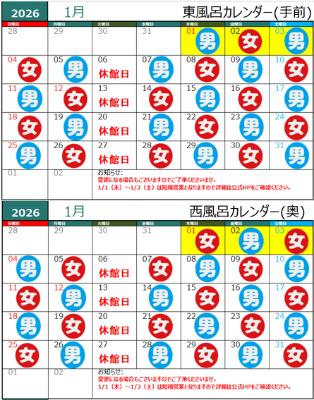 1月の休暇日のお知らせ