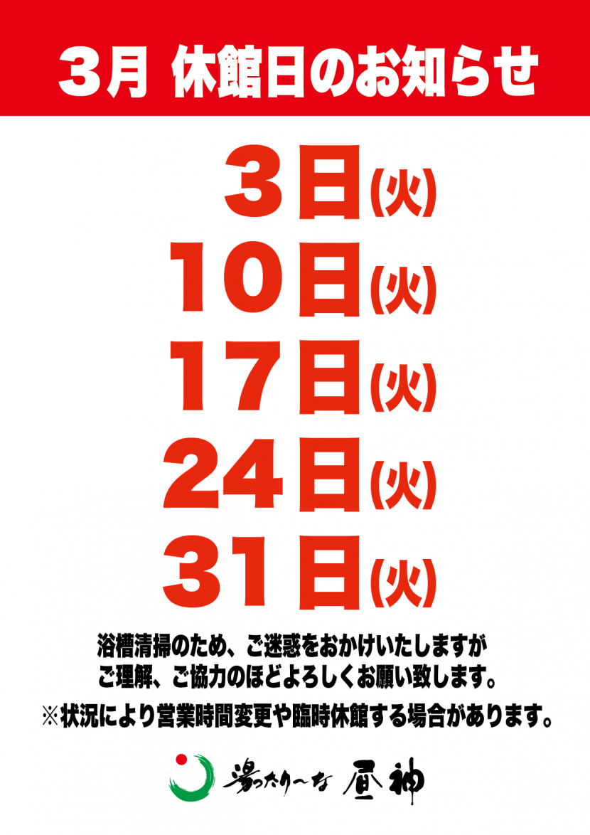 3月休館のお知らせ