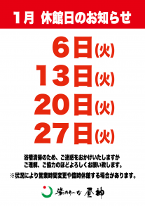 | 10:00~21:30 (最終受付20:30まで) | 毎週火曜日 (火曜が祝日の場合は翌日) | 大人800円、小人400円(プール+入浴料 大人1,100円、小人550円) |